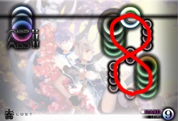 - On Hard mode at the very end of the old chart, two patterns form "L8", referencing the song's name.